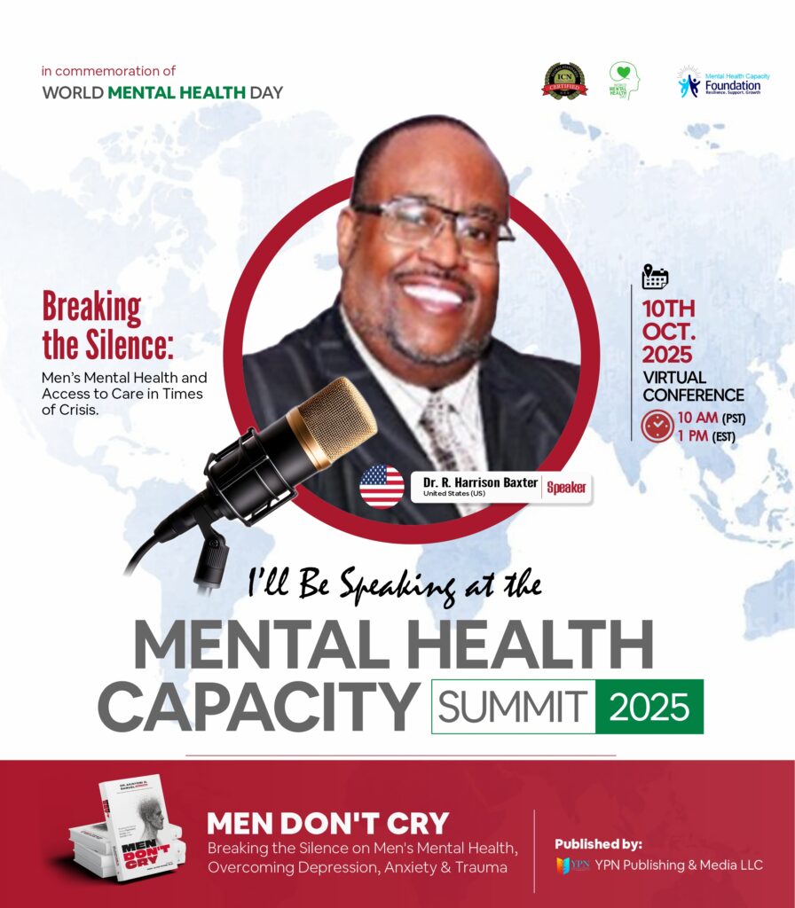 The fire you carry should warm you, not consume you. These words form the heartbeat of Dr. R. Harrison Baxter’s powerful chapter, When Fire Feels Like Failure, in the groundbreaking anthology Men Don’t Cry. As the world prepares to mark World Mental Health Day on October 10 under the theme Breaking the Silence: Men’s Mental Health and Access to Care in Times of Crisis, Dr. Baxter’s voice emerges as both a warning and a lifeline.